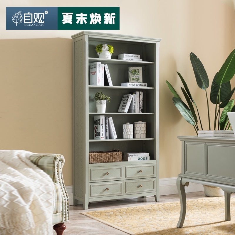 自观家具 高柜实木展示柜收纳储物柜置物柜靠墙带玻璃门 美式书柜热门设计联盟服务商