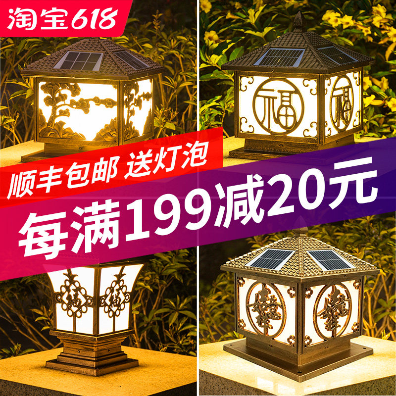 太阳能柱头灯庭院花园别墅门柱灯户外围墙头灯室外防水中式柱子灯热门设计联盟服务商