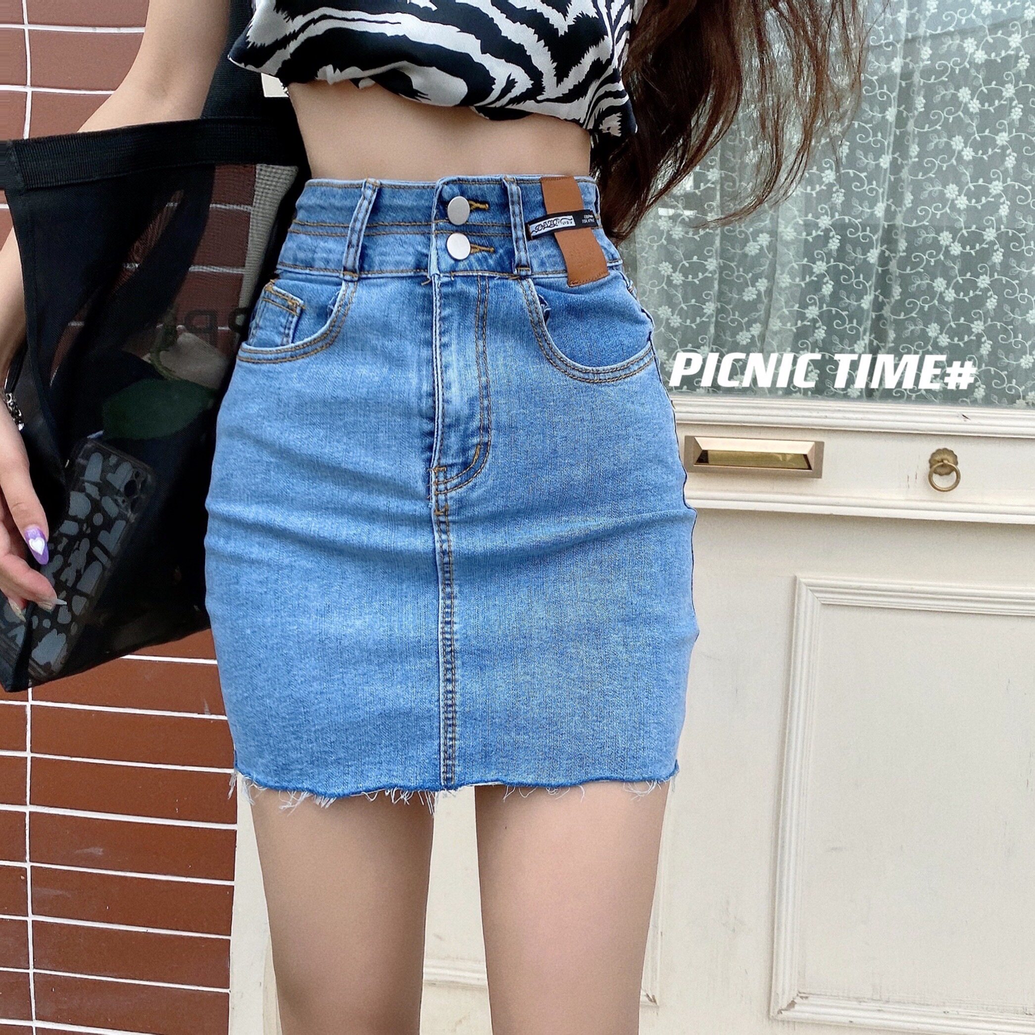 A600#韩版INS风复古洗水双排扣图标高腰牛仔短裙 实价热门设计联盟服务商